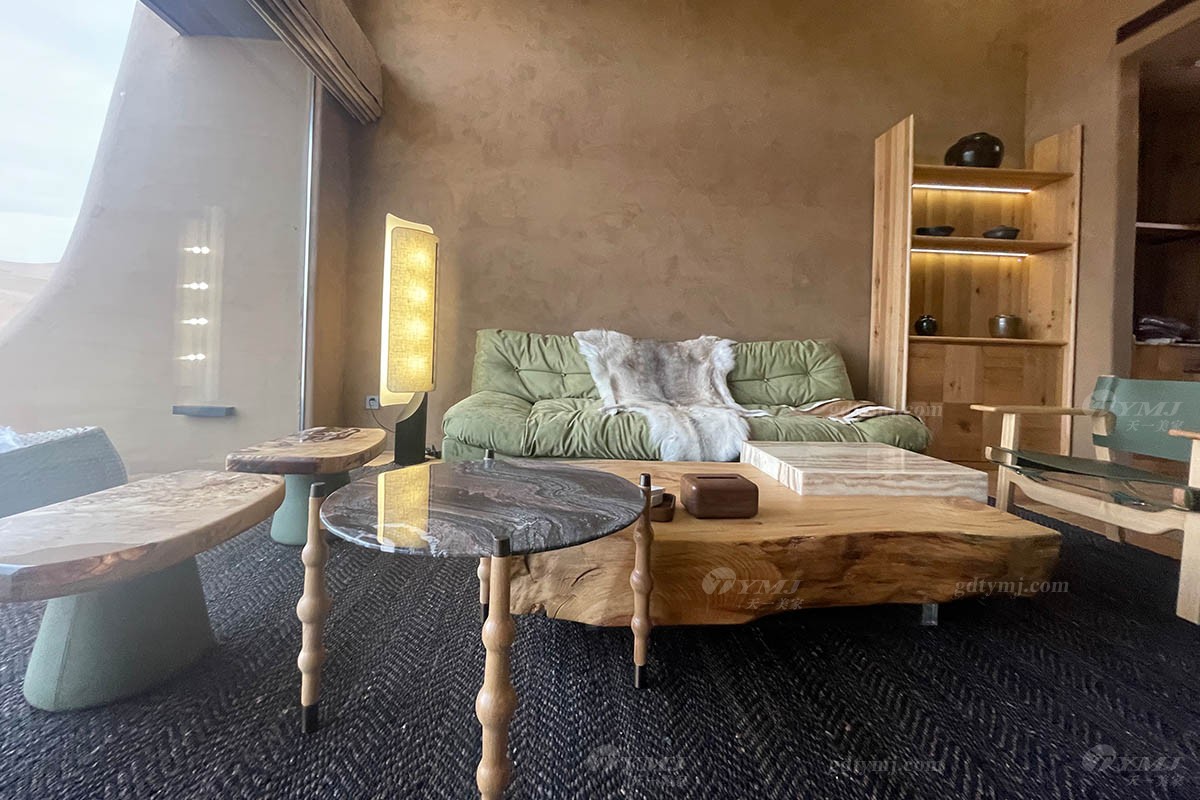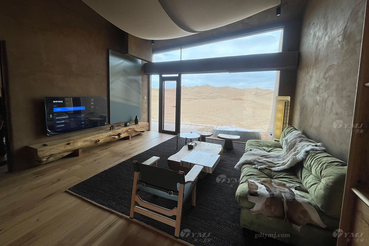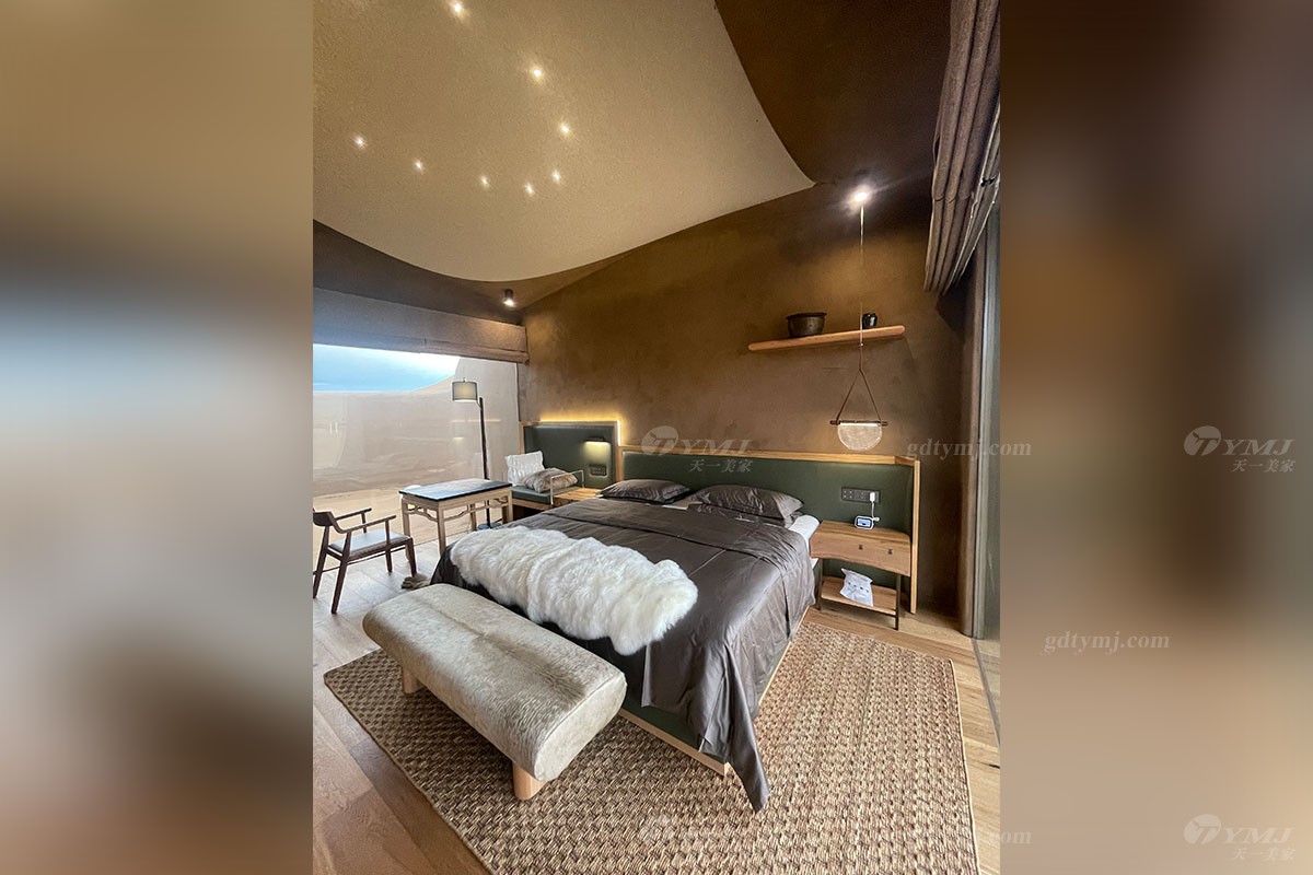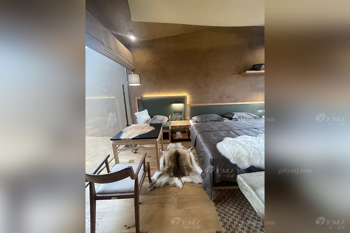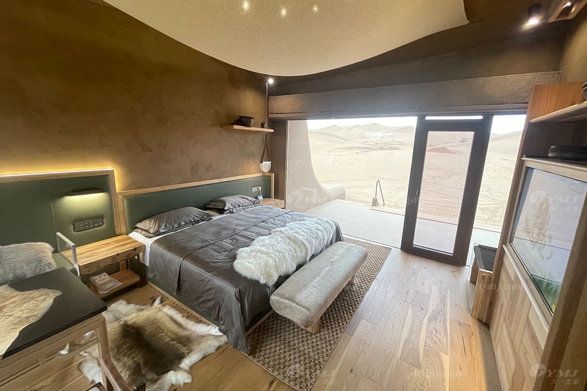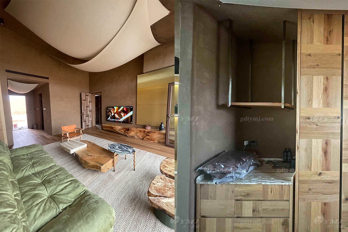 項目介紹:本項目位于中國北部內蒙古鄂爾多斯的沙漠地帶,號稱藏在沙漠里的酒店項目,在漫天黃沙的沙漠里,酒店外觀依據地形而建,獨特而有趣,所有家具產品設計為了配合酒店的風格,主要以現代簡約風格為主,色調上運用原木色的實木和綠色皮布藝,很好的搭配酒店房間裝修以及周邊環境,簡單而實用,旨為在沙漠旅途的人們提供一處恬靜休閑場所。