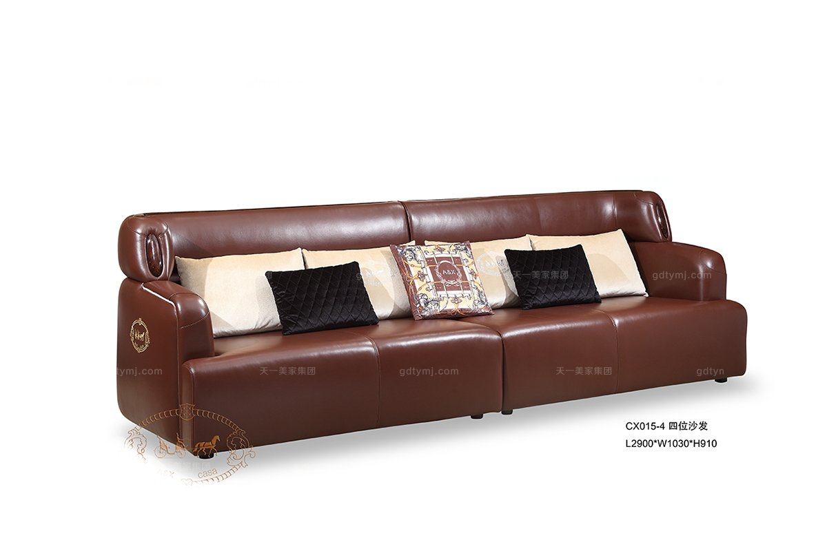 高端奢華大氣別墅家具酒紅色真皮四位沙發