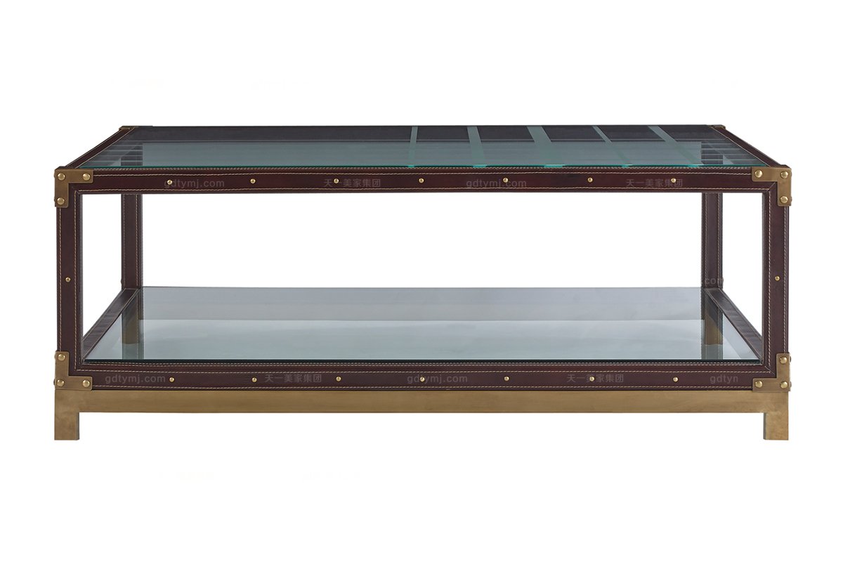 高端品牌美式真皮茶幾