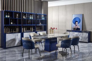 現代簡約家具高端別墅會所家用時尚潘多拉巖板圓餐臺